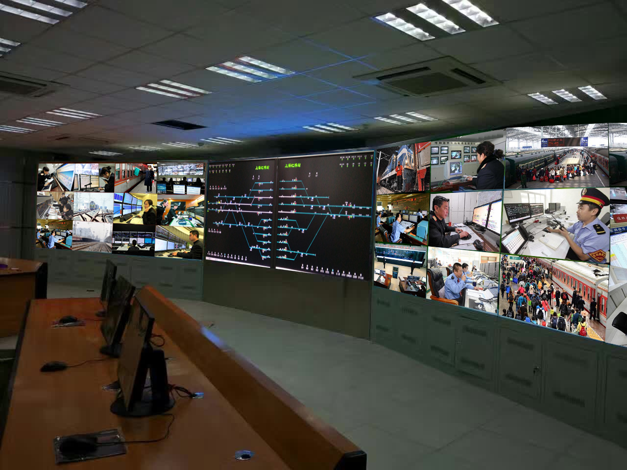 鐵路行業的“數字安全”綜合信息網絡平臺系統,應用大屏幕數字拼接墻系統對各類信息(多媒體網絡、計算機、各類監控視頻等)提供強大的處理和顯示功能,它將管區內站點的安全生產監測監控系統和信息管理系統建立 數據庫,直接在高清晰度、大規模數字拼接墻超大屏幕的地圖上進行跟蹤、調度管理和信息查詢。形成站點管理的數字化、圖形化、安全管理的信息化和調度指揮的科學化。