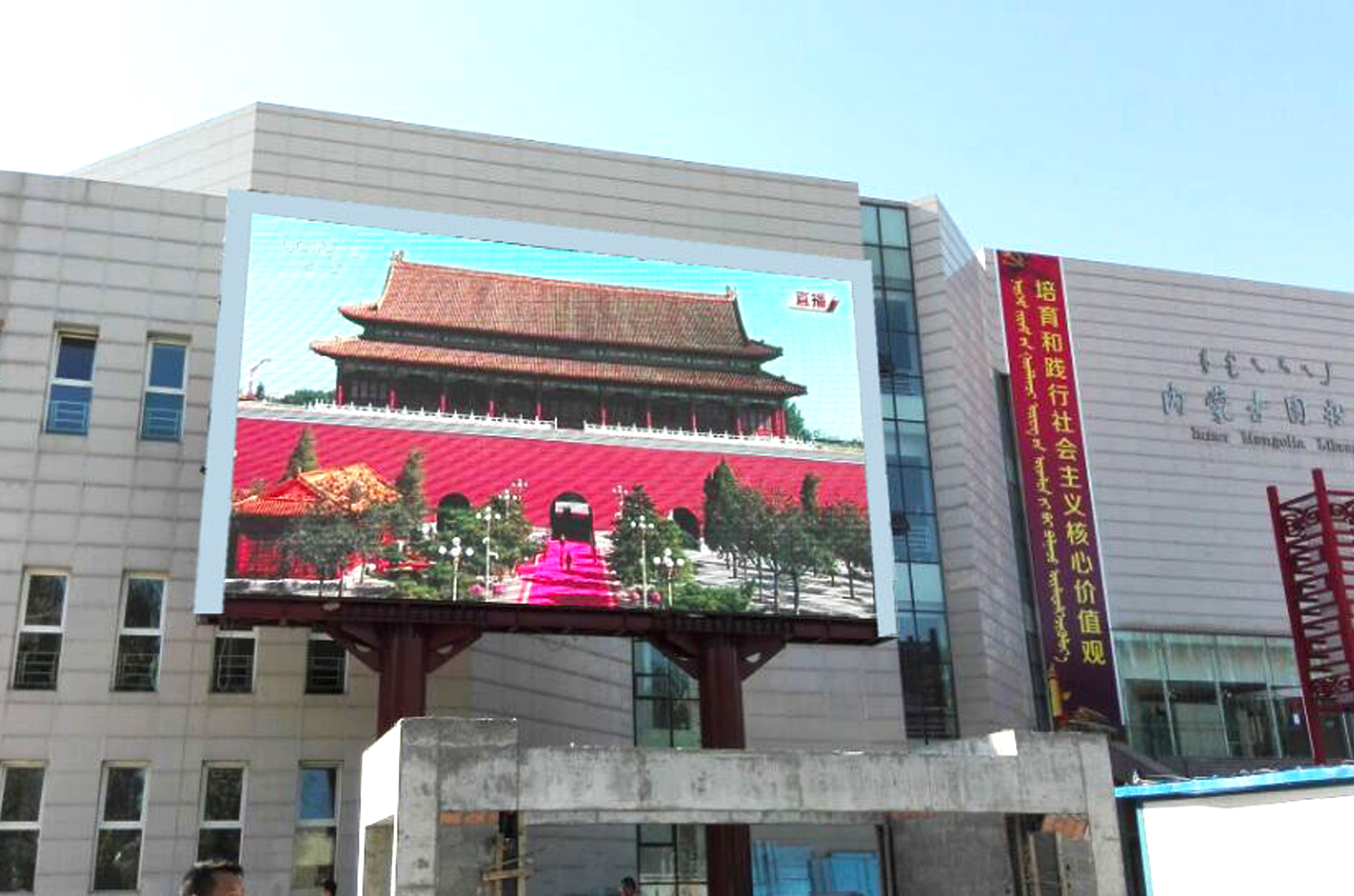 此次為呼和浩特市土默特中學(xué)學(xué)校體育館設(shè)置4塊P3 LED顯示屏于體育館的墻上,設(shè)置1塊顯示屏的應(yīng)盡可能方便比賽與集會(huì)中大多數(shù)人的觀看,設(shè)置兩塊顯示屏的應(yīng)將其安裝在體育館兩端的墻上。面積大、觀眾席位多的體育館,了一塊置于舞臺(tái)上方作為條幅屏顯示。