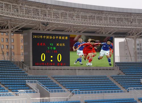 學(xué)校體育場(chǎng)只需設(shè)置一塊LED顯示屏,一般安裝在體育場(chǎng)南邊看臺(tái)上方,面向北方。體育場(chǎng)顯示屏屬于戶外顯示屏,亮度要求高,在陽(yáng)光照射的環(huán)境下觀眾必須能看清楚顯示屏上的內(nèi)容,同時(shí)必須有良好的防風(fēng)、防雨、防腐蝕、防雷擊措施,屏體內(nèi)有良好的通風(fēng)散熱設(shè)施,預(yù)留