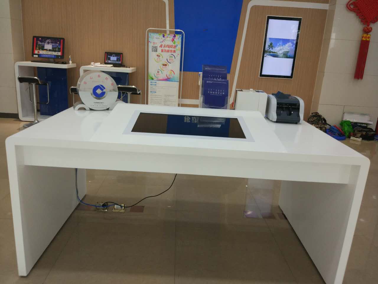 我公司為某銀行內(nèi)蒙古分行承建的智慧多媒體顯示設(shè)備可以實現(xiàn)金融信息實時發(fā)布,如利率、外匯牌價、基金、債券、黃金、財經(jīng)新聞等,并輔以金融知識、電子理財、銀行業(yè)務(wù)介紹,員工培訓(xùn),銀行內(nèi)部或外部廣告發(fā)布平臺,文化宣傳平臺,以創(chuàng)建品牌示范窗口,并利用創(chuàng)新科技塑造新的服務(wù)體驗、業(yè)務(wù)的創(chuàng)新,為企業(yè)云計算、大數(shù)據(jù)、移動互聯(lián)網(wǎng)的深度融合奠定了堅實的基礎(chǔ),實現(xiàn)規(guī)模經(jīng)濟,提升效率和降低成本,達到有效的客戶管理和高效的營銷績效的目的。