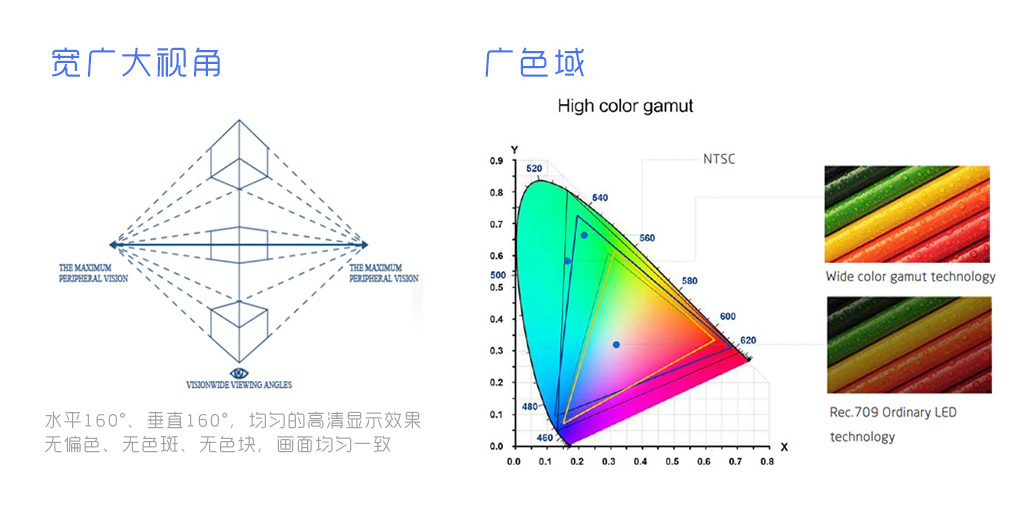 水平/垂直160°的超寬視角,各個(gè)角度盡享清晰逼真的畫(huà)質(zhì)。