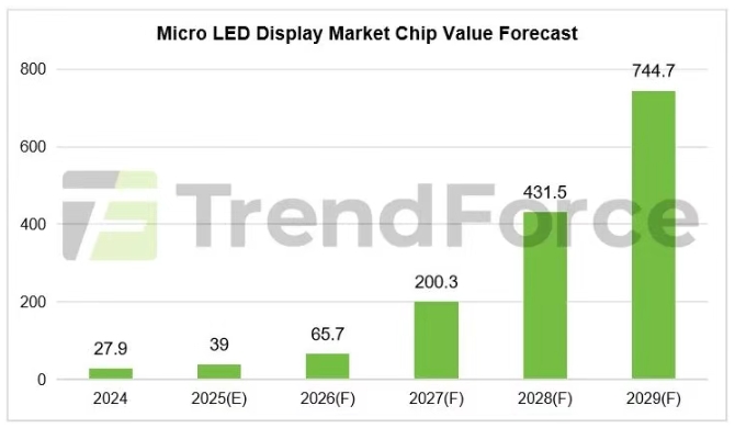 TrendForce集邦咨詢(xún)預(yù)估2029年Micro LED顯示應(yīng)用的芯片產(chǎn)值將達(dá)到7.4億美金。同時(shí),為了拓寬Micro LED應(yīng)用場(chǎng)景的邊界,業(yè)界致力于挖掘Micro LED在非顯示應(yīng)用的潛力,以此來(lái)加速M(fèi)icro LED整體的商業(yè)化進(jìn)程。